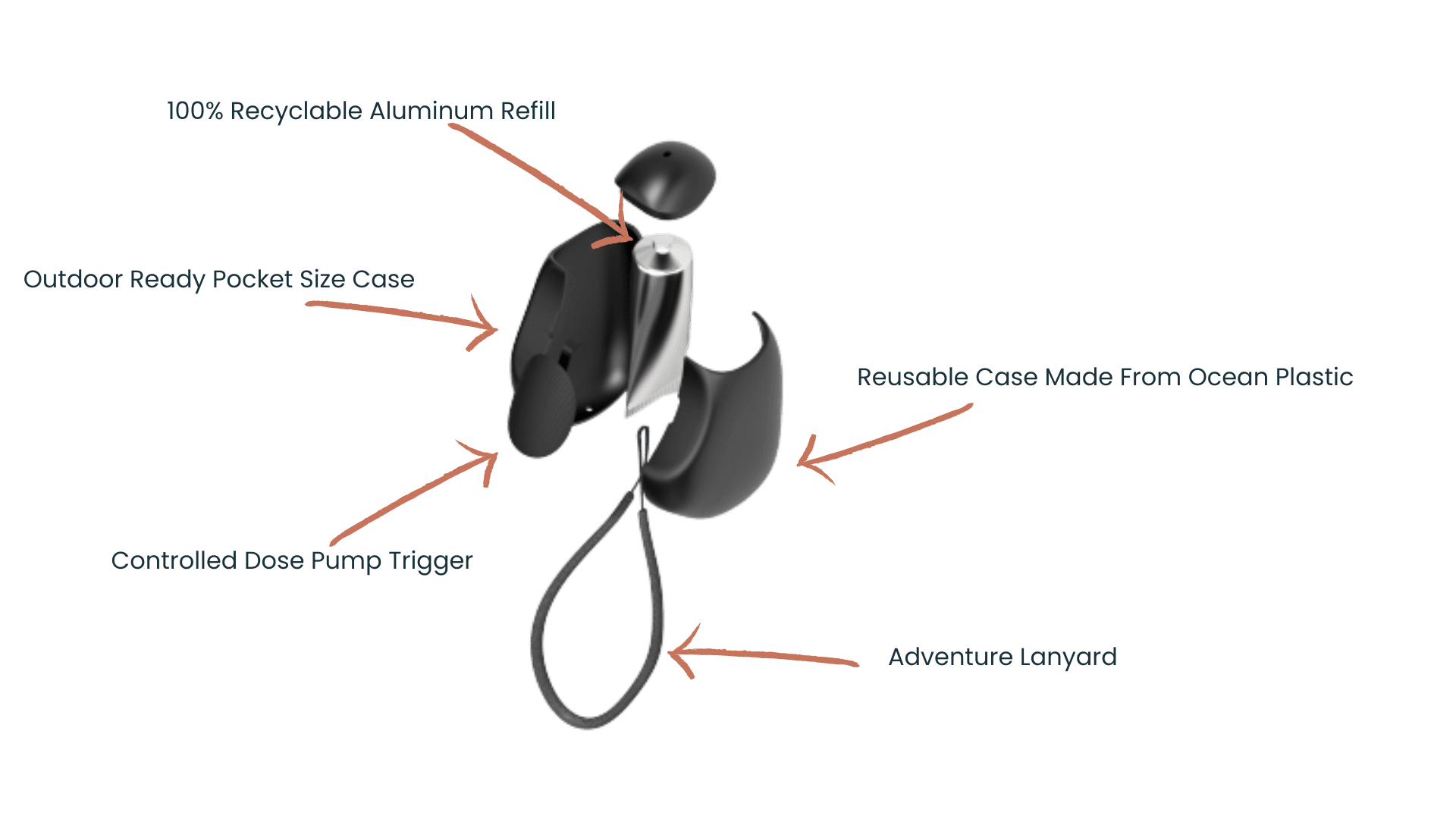 Bee Wild Outside refills are made from 100% Aluminum and are infinitely recyclable. Our forever dispensers are made from Ocean Waste Plastic and are designed to eliminate single-use plastics.